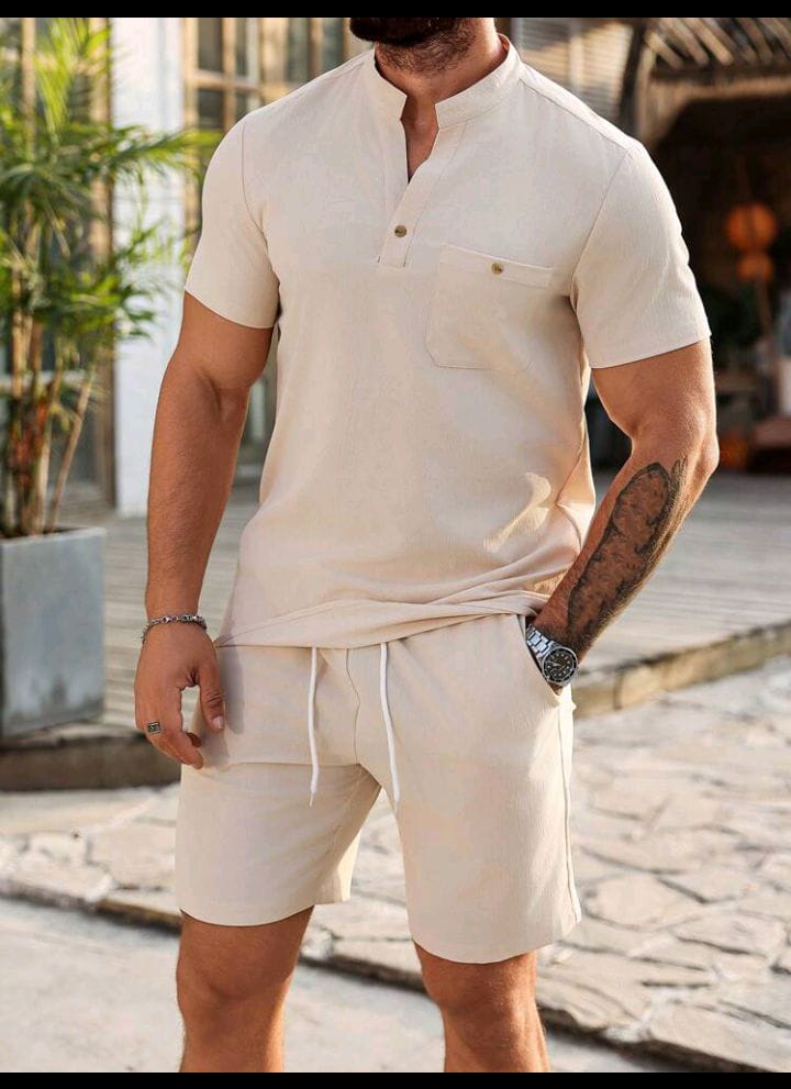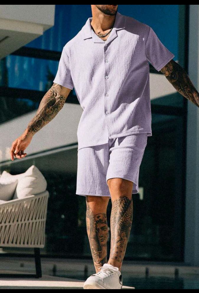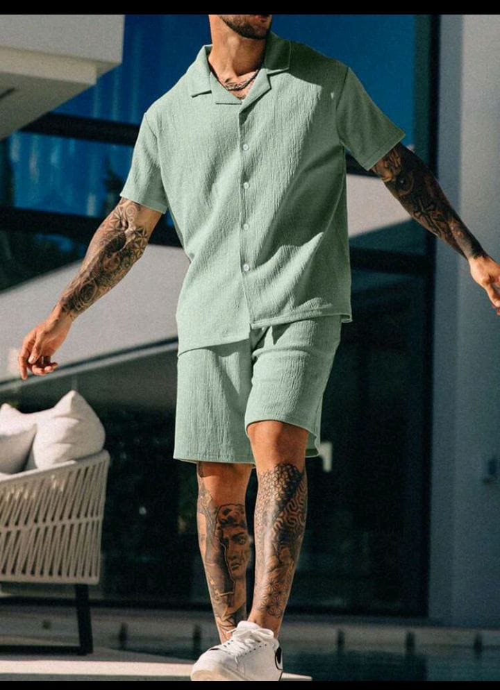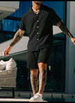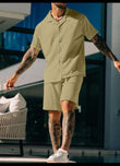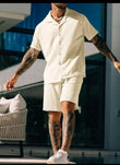 Men's Casual Textured Solid Color Short Sleeve Shirt & Shorts Set